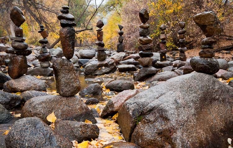 Ustawianie kamieni, zarówno tych małych, jak i tych dużych, było praktykowane niejednokrotnie w wielu kulturach na świecie jako swoista forma sztuki. Mike Grab – artysta z Colorado, małe odłamki skał ustawia w taki sposób, by całkowicie obalić teorię grawitacji.