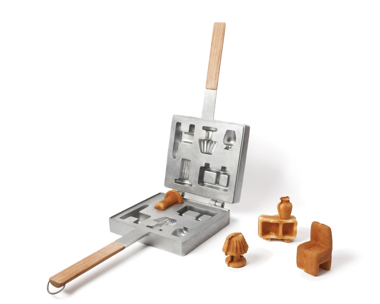 Japońsko-portugalski duet projektantów – Ryosuke Fukusada i Rui Pereira – dobrze wie, jak można dogodzić swojemu podniebieniu smacznym gofrem przy jednoczesnej, fenomenalnej uciesze dla oczu. Stworzona przez nich patelnia do gofrów Sapore dei Mobili to bowiem nic innego, jak przyrząd do wypieku malutkich mebli z ciasta naleśnikowego. Dzięki niewielkim formom, wśród których znajdziemy lampę, krzesło, szafkę z wazonem czy stolik, nasz talerz może się zamienić w prawdziwe meblowe dzieło sztuki. Niestety gofrownica nie jest dostępna na rynku akcesoriów kuchennych, ale miejmy nadzieję, że niedługo trafi do powszechnej sprzedaży.
